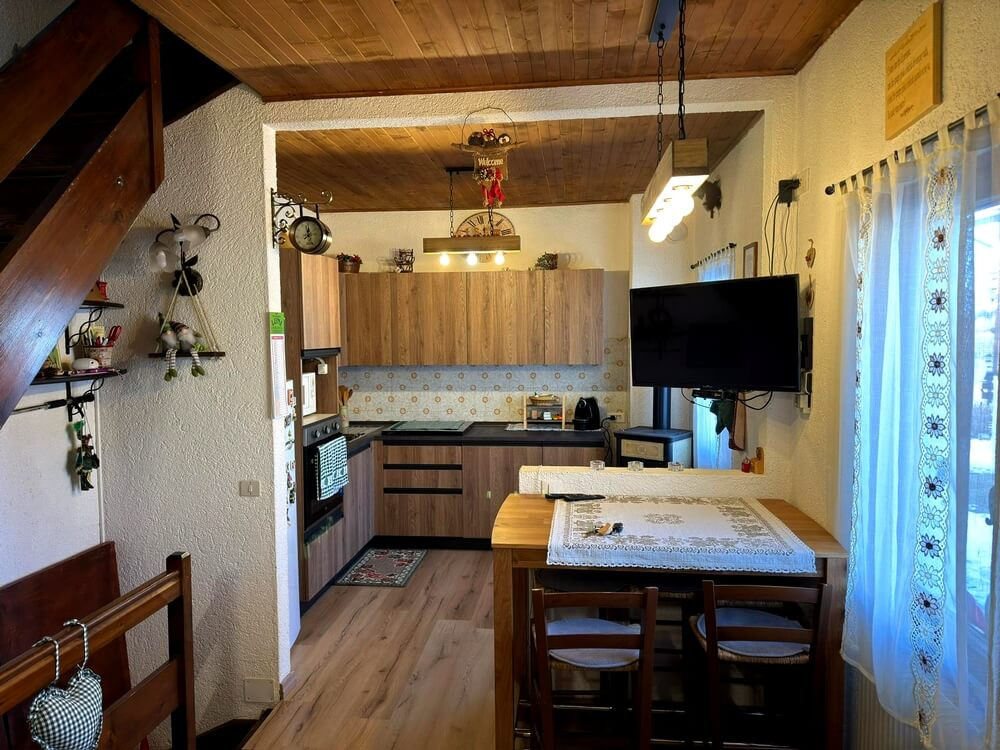 Accogliente e luminoso soggiorno con angolo cottura, uno spazio armonioso pensato per la vita quotidiana e i momenti di convivialità.