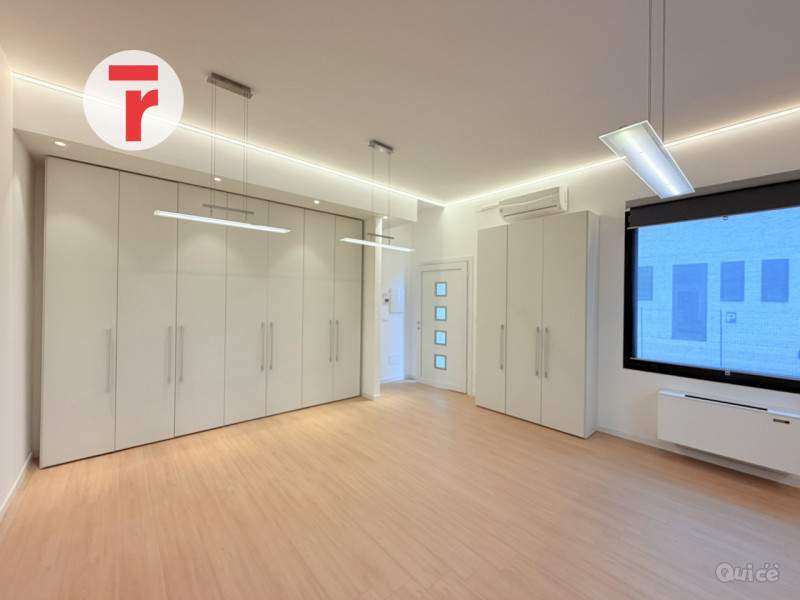 L'ufficio si trova al piano terra, si compone di una stanza principale dove possono essere ospitate 4 scrivanie o utilizzabile come reception, ed una seconda stanza separata dalla precedente da una elegante parete in vetro, ideale come sala riunioni o come ufficio principale.