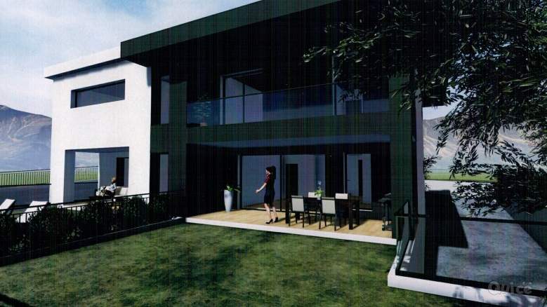 La soluzione di nuova costruzione si sviluppa su due piani fuori terra e un piano seminterrato, con una superficie abitativa di 201 mq, giardino di 87 mq ed area esterna di 138 mq.